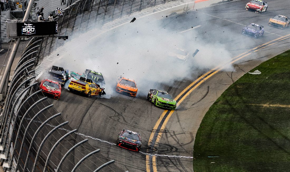 A sete voltas do fim do segundo segmento, um contato entre o Chevrolet nº 40 de Justin Allgaier e o Toyota nº 11 do tricampeão das 500 Milhas de Daytona, Denny Hamlin, provocou um acidente envolvendo 20 carros no trioval.