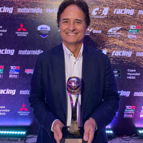 A jornalista Isabel Reis, realizadora do prêmio e já em plena preparação da 30ª edição em 2026, entregou para o presidente um autêntico Capacete de Ouro, uma homenagem pelo trabalho desenvolvido desde que assumiu a presidência da entidade técnico-desportiva.